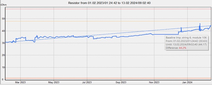 Ein Akku, egal welche Chemieart, wird nach langer Zeit im „Standby“ eine steigende Impedanz zeigen. Ursache ist dabei nicht nur die Alterung oder Mängel am Akku, meist ist es einfach nur der Einfluss der Schwerkraft auf die unterschiedlich dichten Moleküle im mehr oder wenige flüssigen Electrolyt. Das wird schnell sichtbar, wenn man direkt nach einer Entladung die Impedanz fallen sieht, aber nur um binnen weniger Tage wieder auf den vorherigen Wert ansteigen zu sehen. Wenn der Impedanzwert aller Akkus sich entsprechend gleich verhält und sich nicht erheblich von den Messwerten anderer Akkus in diesem System unterscheidet – dann überwiegt die „natürliche Alterung“.
