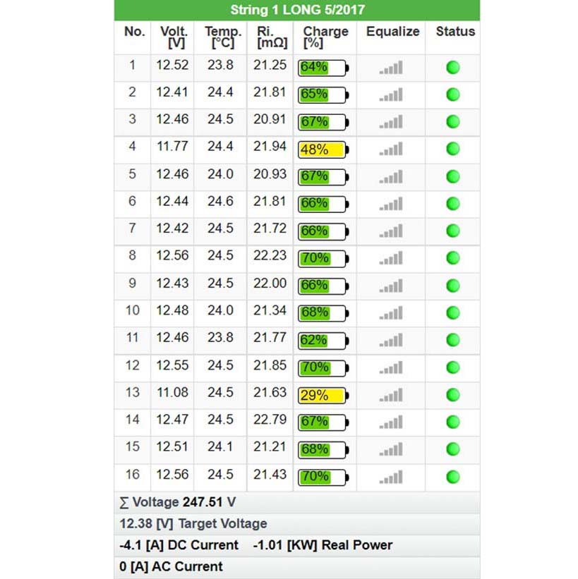 BACS als Batterie Management System bietet hier Kunden eine Freiheit in der Entscheidungsfindung an, die von einem Batterie Monitoring System nicht zu erwarten ist: Das aktive Management der Batterien nimmt bei schwachen Zellen/Blöcken den unmittelbaren Handlungszwang und erlaubt anhand der Messwerte fundierte Entscheidungen zu treffen und geplant umzusetzen.