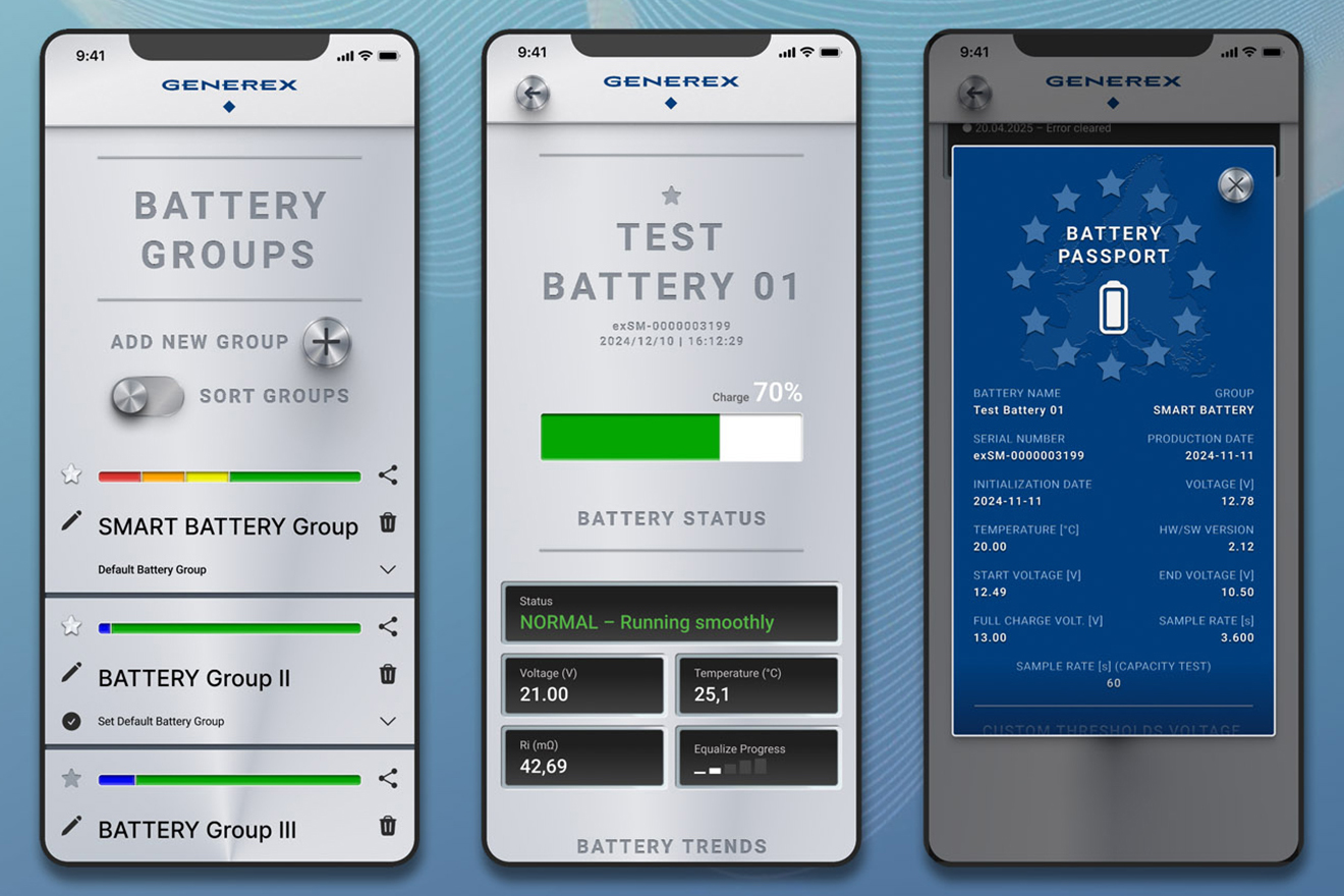 ✔ Manage & prioritize battery groups ✔ Live data: voltage, temperature, internal resistance, status ✔ Start and evaluate capacity test ✔ Complete EUBattG 2024 compliant battery passport with serial number & lifetime history ✔ Export to SMARTBATTERY Exporter to create EXCEL battery reports