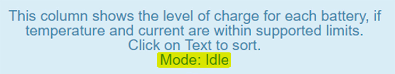 Mode: Float" appears for "Float Charging". If "Intermittent Charging" was detected, "Mode: Idle" appears here, marked yellow.