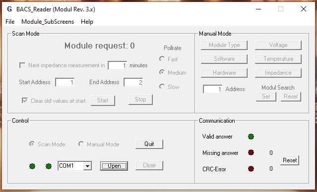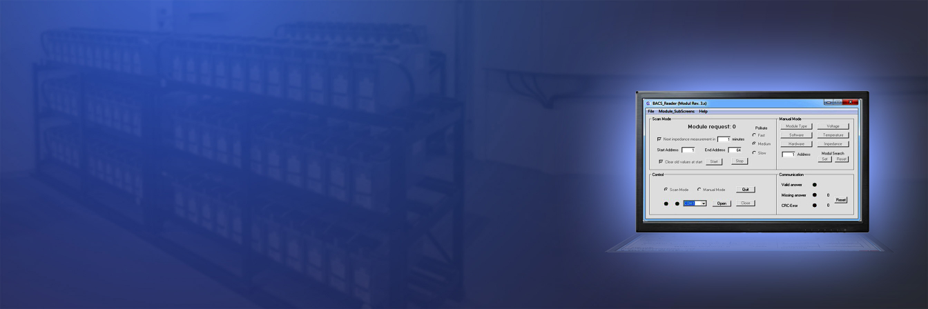 The core function is intended for battery experts and technicians who are responsible for the actual configuration of the BACS system and managing connected peripherals and require the measurement data for thresholds or who are supposed to find inexplicable communication failures later during post-processing. The BACS Reader allows for the inspection of the modules and the quality of the data stream.