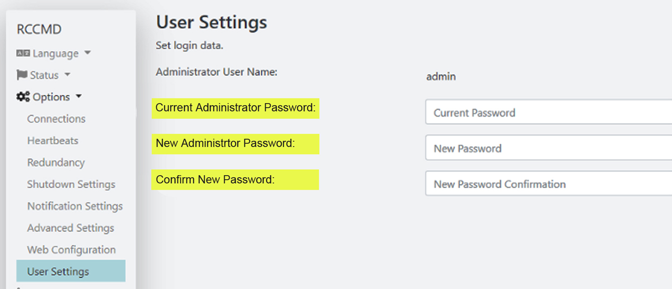 Damit waren auch unerfahrene RCCMD-Nutzer in der Lage die Erstkonfiguration schnell durchzuführen. Diese Hilfestellung wurde jetzt deaktiviert. Künftig wird RCCMD nichts mehr über das Erstinstallationspasswort verraten und zusätzlich einen Hinweis anzeigen, wenn der Anwender dieses Erstinstallationspasswort nicht durch eines mit besonderen kryptischen Regeln ersetzt.