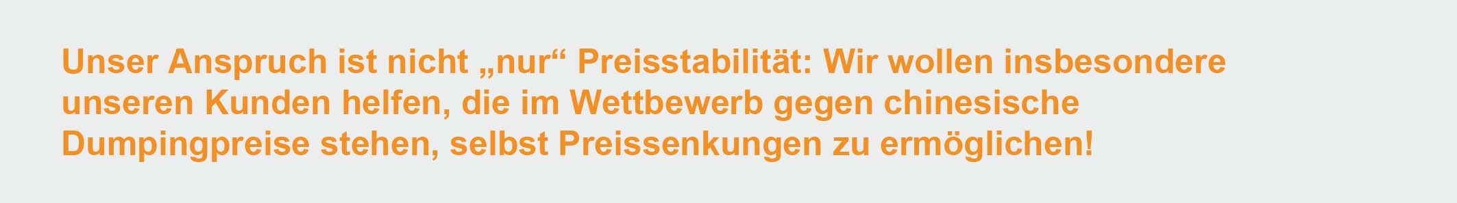 Die letzten 2 Jahre ist es uns gelungen, die Preise für unsere Kunden stabil halten zu können – trotz Inflation haben wir keine Preissteigerungen an unsere Kunden weitergeben müssen! Auch im laufenden Jahr können wir stabile Preise ohne Preisschwankungen garantieren! Bei größerer Stückzahlen-Abnahme des CS141 gewähren wir sogar eine geringe Preissenkung!